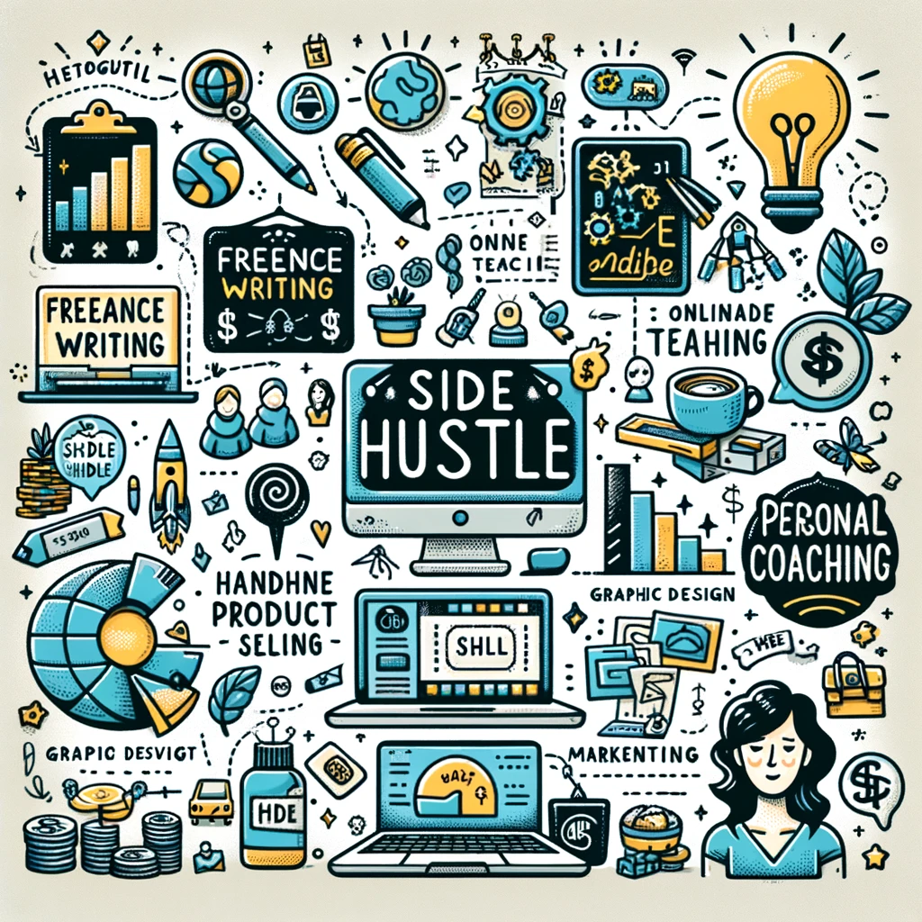 - 사이드 허슬은 본업 외에 추가 수익을 위해 참여하는 부업을 말합니다. 이는 재능, 취미, 또는 전문 지식을 활용하여 수익을 창출하는 방식이 될 수 있습니다. 예를 들어, 프리랜스 글쓰기, 온라인 강의, 핸드메이드 제품 판매 등이 있습니다.